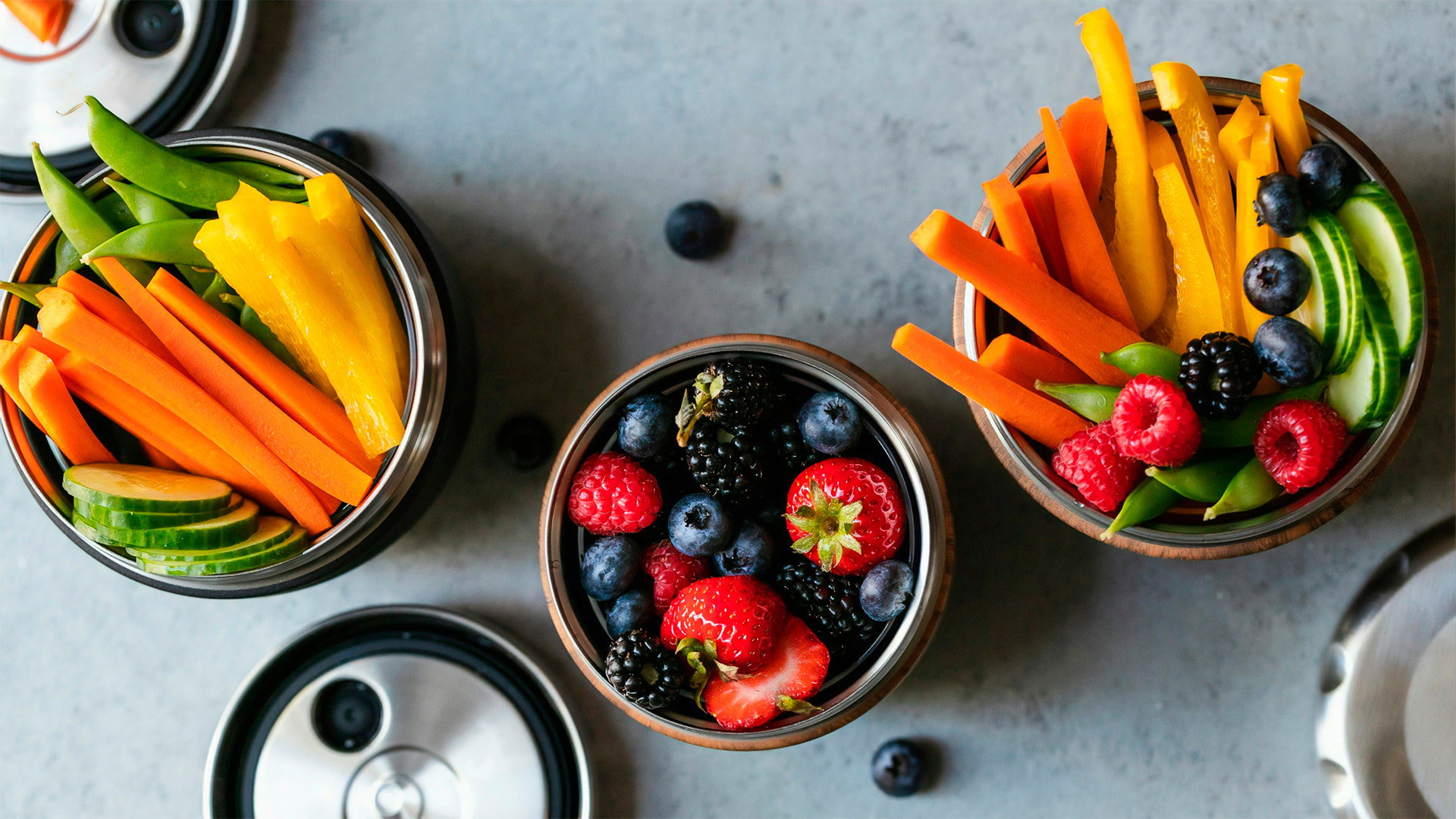 Das Essen in der Pause ist natürlich ganz anders als das Essen zuhause am Küchentisch. In der Schule essen die Kinder in Gesellschaft; es wird gekuckt, wer was dabei hat, Kekse werden geteilt, Beeren getauscht – Essen ist für die Kleinen hier ein sehr sozialer Akt. Den Pausensnack sollte man also so zusammenstellen, dass er zu dieser Art des sozialen Miteinanders passt. Kleine Snacktomaten, geschnittenes Obst und Gemüse, das Weckla in der Mitte halbiert – so tauscht und teilt es sich einfacher, die Happen sind mundgerechter. Das ist wichtig, denn die Schulpausen sind kurz, die Zeit muss auch noch fürs Spielen reichen – sonst kommt die Brotdose fast voll wieder heim.